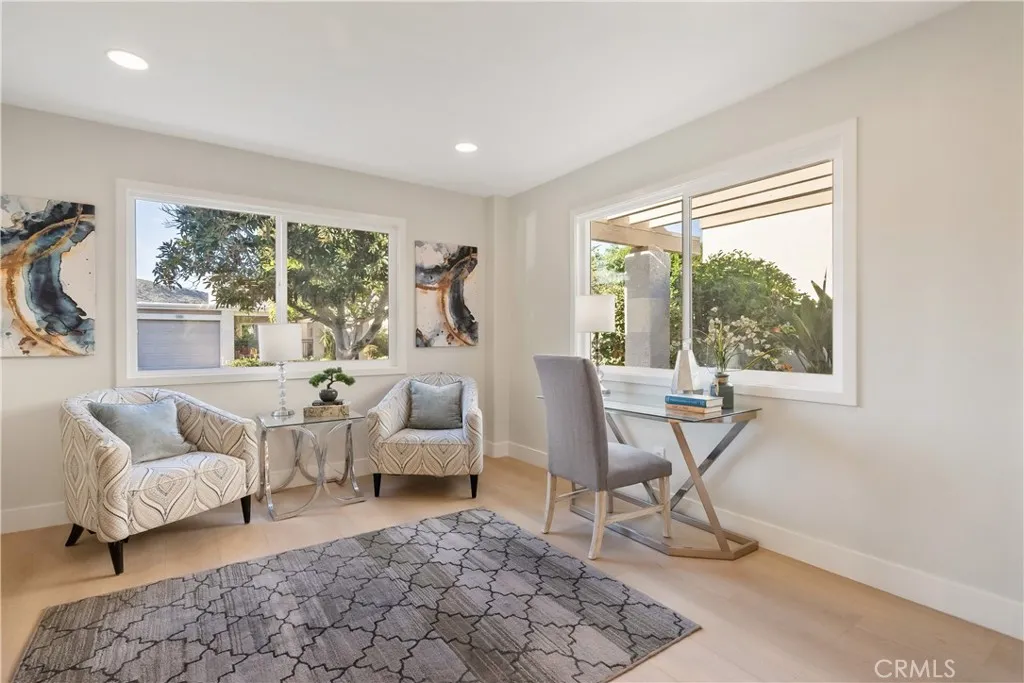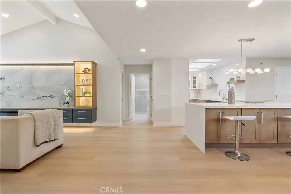 Discover this stunning, expanded, and beautifully remodeled Navarro model. Nestled in a quiet cul de sac close to Barbara Lake. The popular floorplan features two spacious Primary bedrooms and a generous central living room, perfect for relaxing or entertaining guests. The impressive curb appeal is complemented by meticulously landscaped entry area with custom lighting and an impressive modern glass and wood front door that welcomes you and your visitors. Completely renovated with high end finishes, appliances, fixtures and a beautiful new room addition of over 300 square feet. This versatile bonus room off the dining area offers additional space to serve as a TV lounge, den, or home office. The central living room with high ceilings showcases a beautiful wood and marble media wall with custom lighting, electric fireplace and abundant storage. The thoughtfully designed chefs kitchen is a culinary delight, with abundant cabinet and counter space, upgraded appliances, quartz countertops and waterfall island. Both bathrooms exude luxury with custom wood cabinetry, quartz counters, and walk-in showers featuring frameless doors, linear drains, and convenient shelves. Find out why Laguna Woods Village is one of the best retirement communities in CA. Residents Enjoy the 27-hole championship golf course and the 9-hole executive par three course, tennis, pickleball, paddle tennis, lawn bowling, two fitness centers, seven clubhouses, five swimming pools, an equestrian center, gardening areas, an art studio, a world-class woodshop, and more than 200 clubs and organizations. There is a
