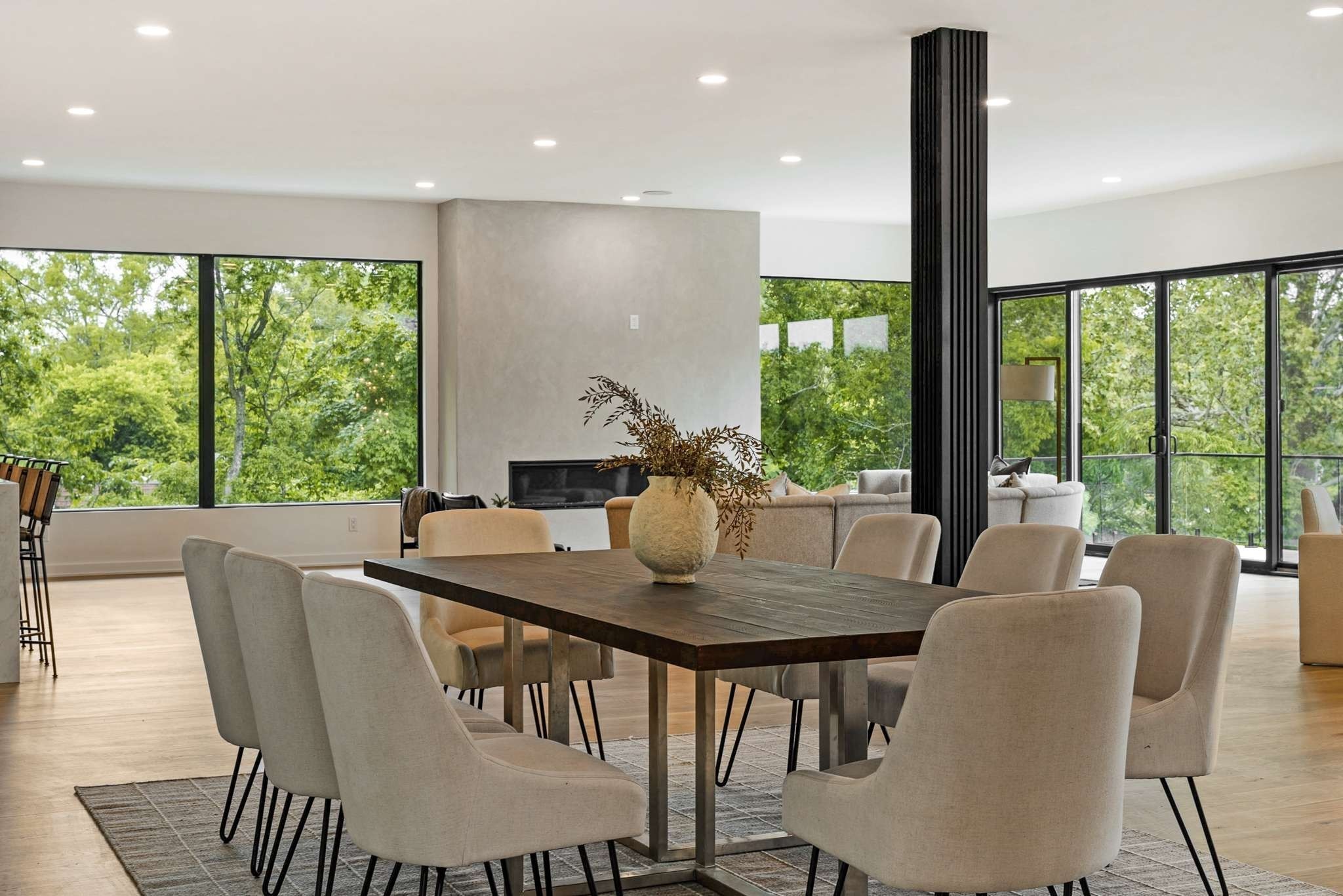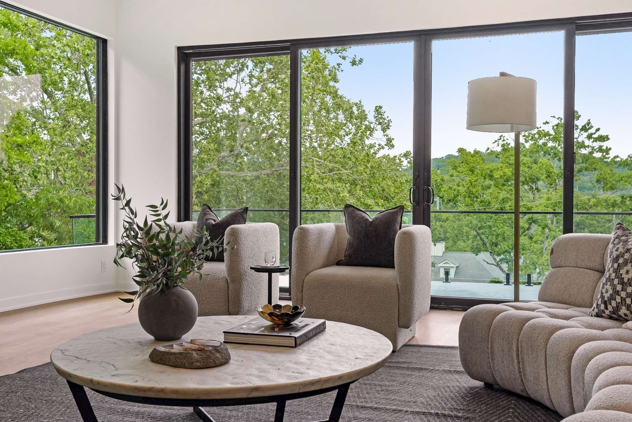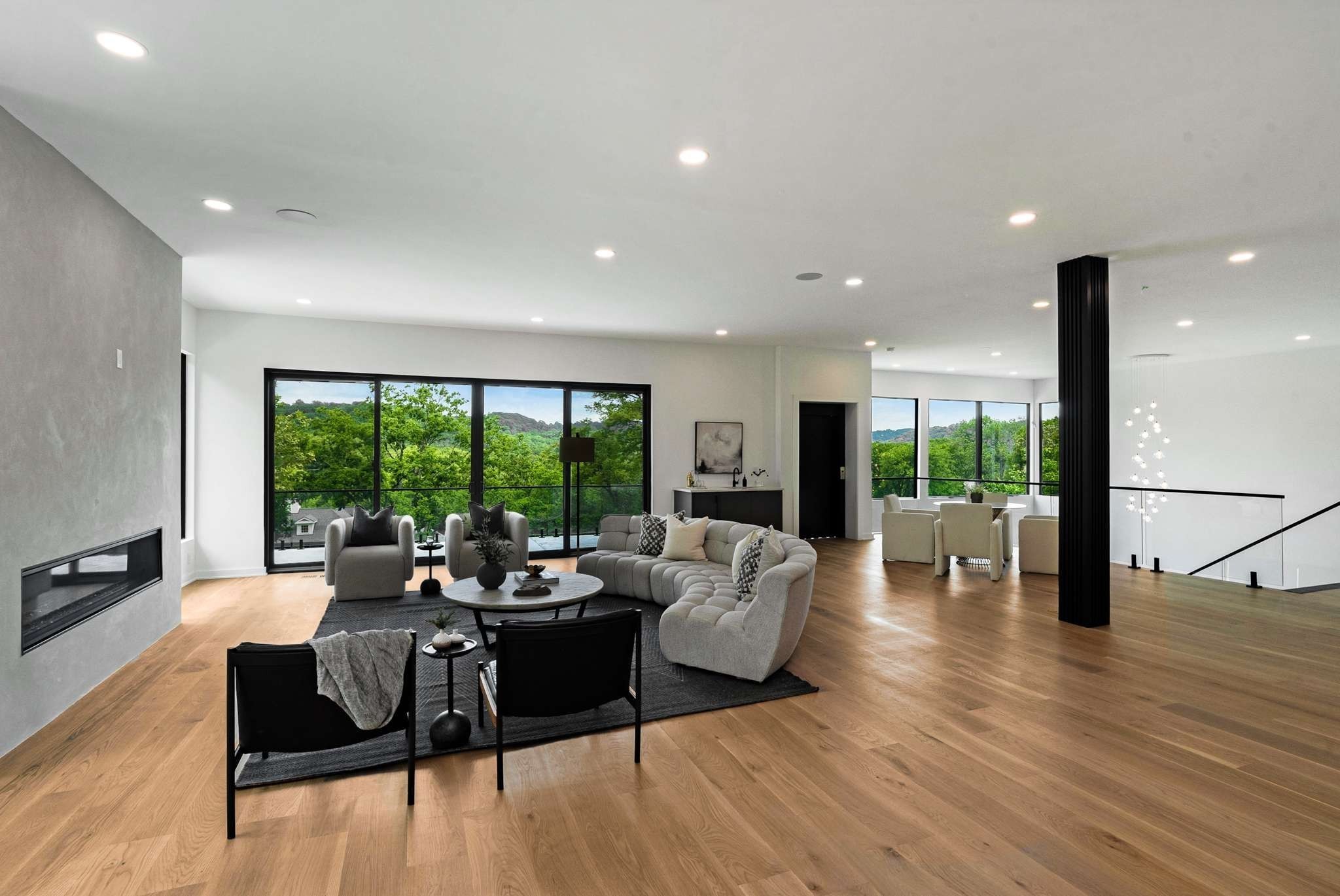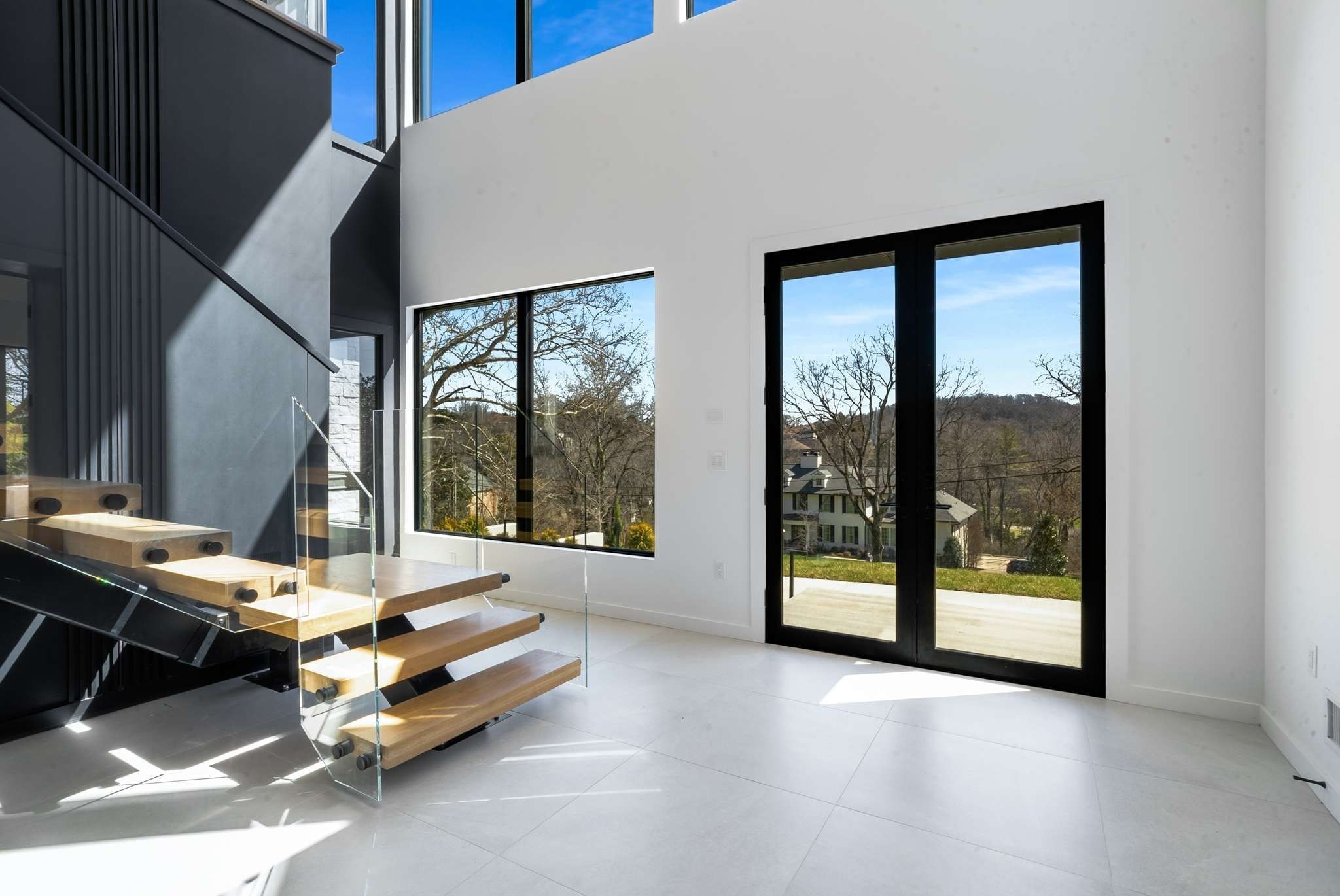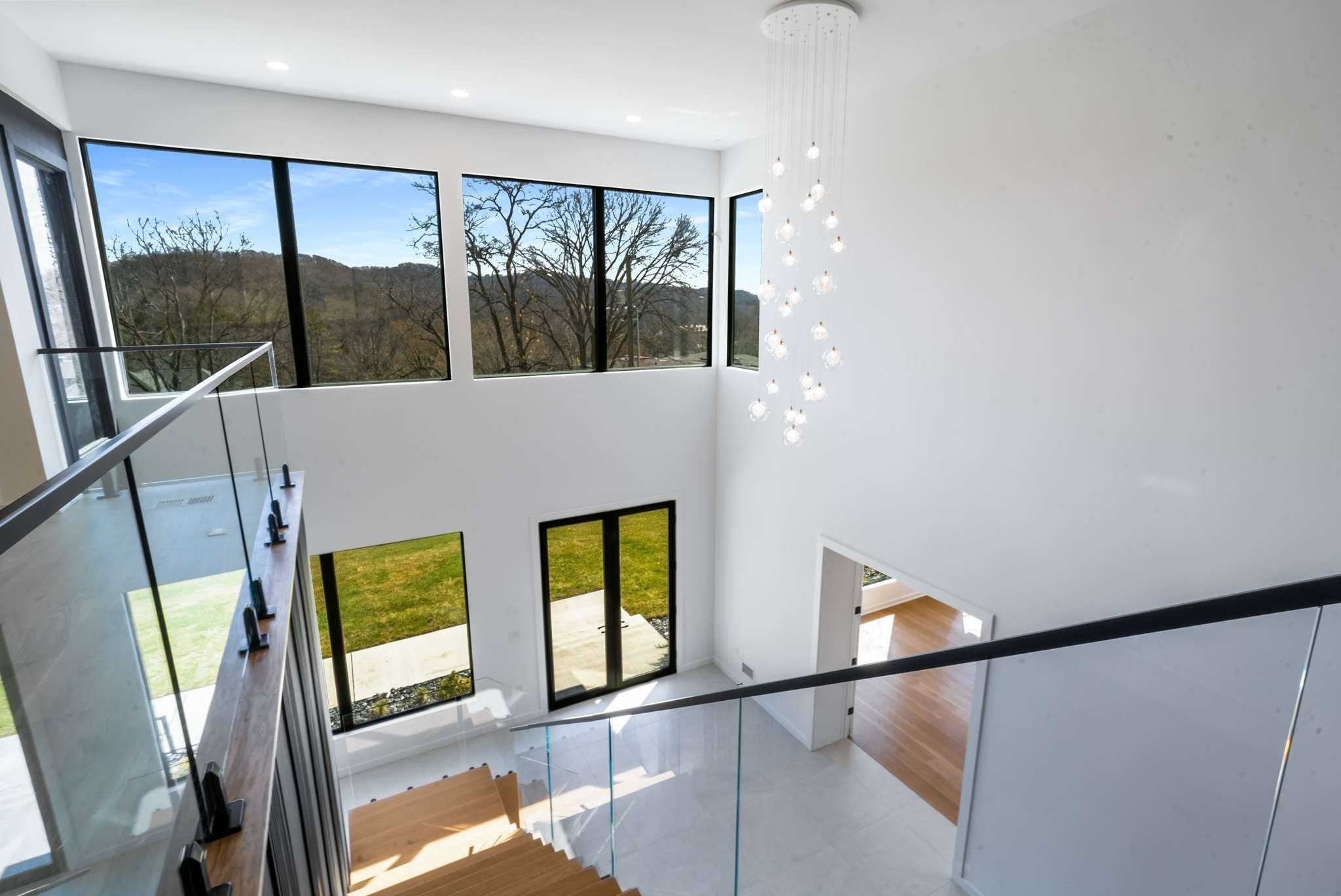 Exquisite MODERN MANSION designed by the award-winning Ryan Thewes, and tucked into the rolling hills of Belle Meade on 1.64 acres. This rare offering is located on one of the largest and most private lots in the area. Expansive living with over 8500 square feet including 5 bedrooms and 9 bathrooms (6 full baths, 3 half baths). Impressive two-story foyer with custom monotube staircase. One of a kind Quartzite entry wall with LED back-lighting feature and entry wall LED lighting. Glass-paneled elevator for with views of the Tennessee hills and the two-story foyer as you ride up that features commercial elevator motorized doors and two sides open to views. Smart control lighting and whole-house audio. Conference-sized office just off the entry. Palatial main floor living drenched in natural light and sweeping hillside views featuring a 72" linear fireplace with modern stucco surround. Primary suite with hillside views from the bedroom and soaking tub. Indoor-outdoor "pool house" wing of the house is a must see with pool bath, storage and pool laundry. Nashville Modern Cabinetry acrylic and custom wood cabinets, WOLF and SUB-ZERO appliances including modern cabinet-front refrigerator, freezer and wine column. Walk-in pantry / skullery with a door out to the patio. Theater room / TV room with wet bar. INCREDIBLE 680 feet square feet of FINISHED FLEX space for a large home gym, full recording studio, golf simulator lounge or wine tasting suite with wine cellar - phenomenal opportunities for customization. Oversized three car garage with three 10' wide doors and additional space for motorcycles, toys and more. Back on the market! Recent appraisal just over $6.4M - MASSIVE price reduction! Buy now with OVER $2M of equity!!!