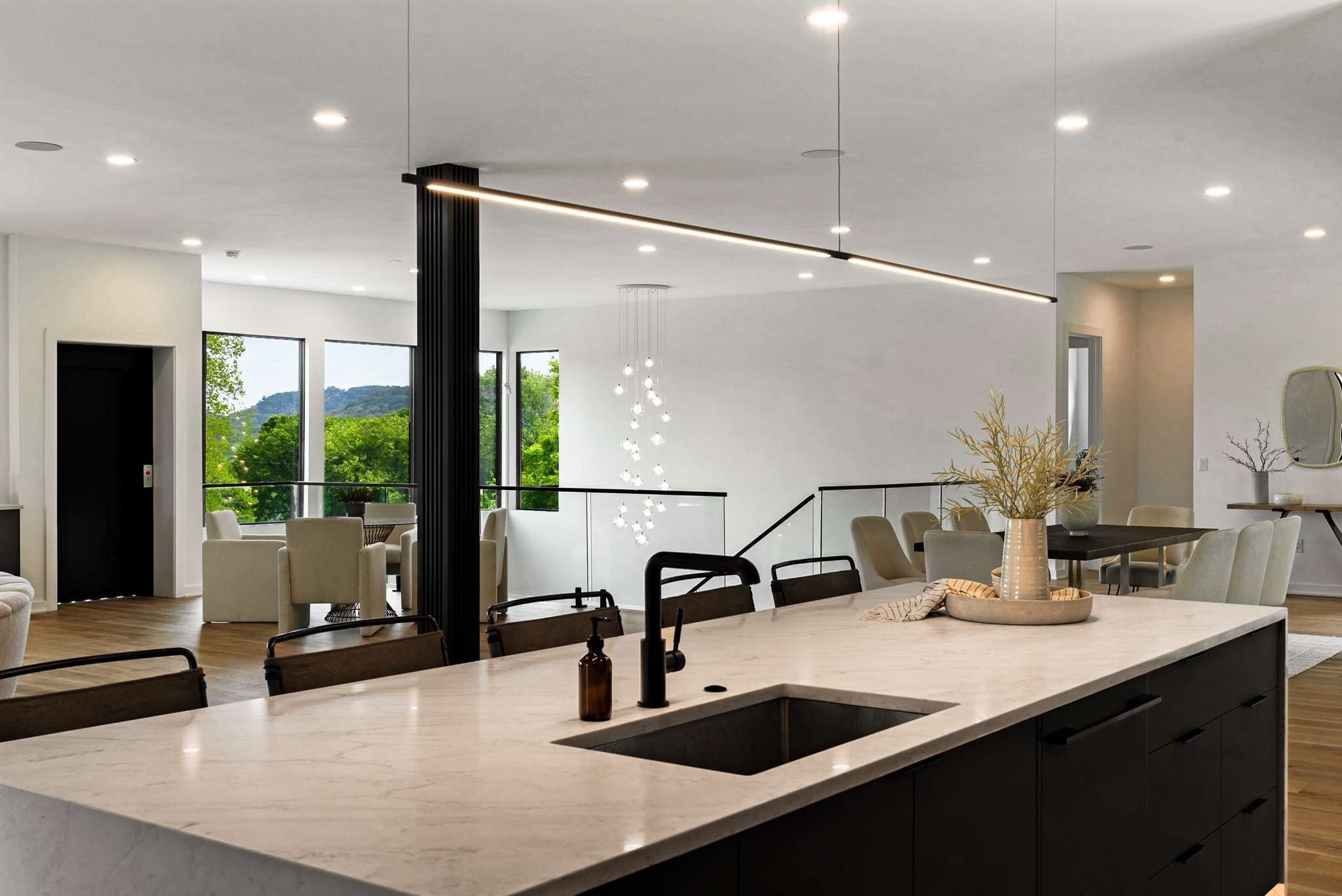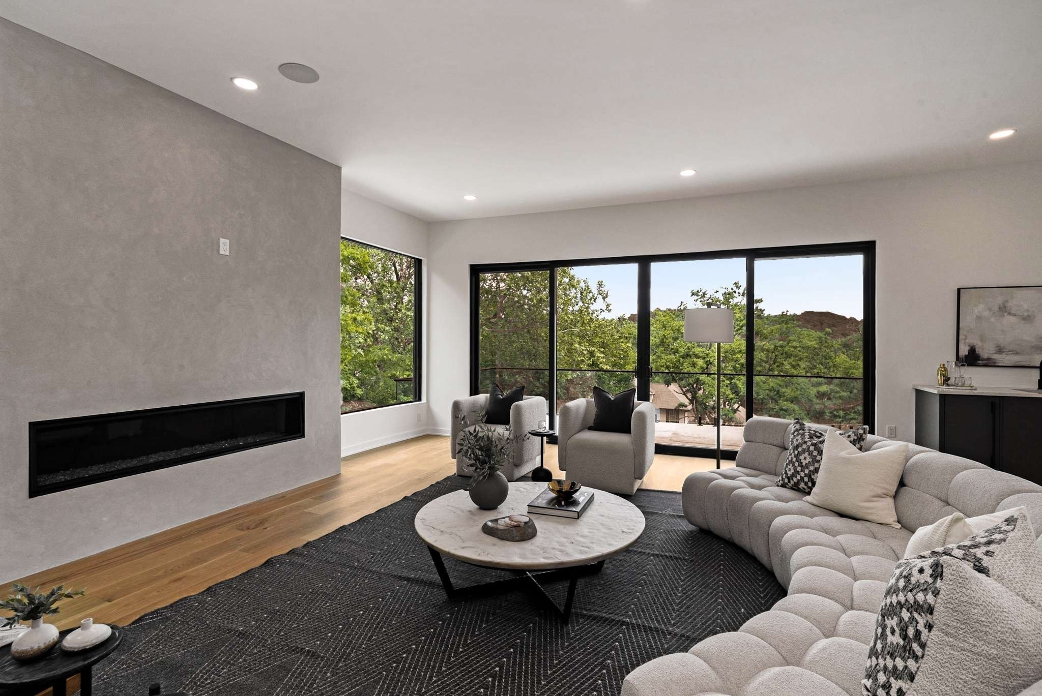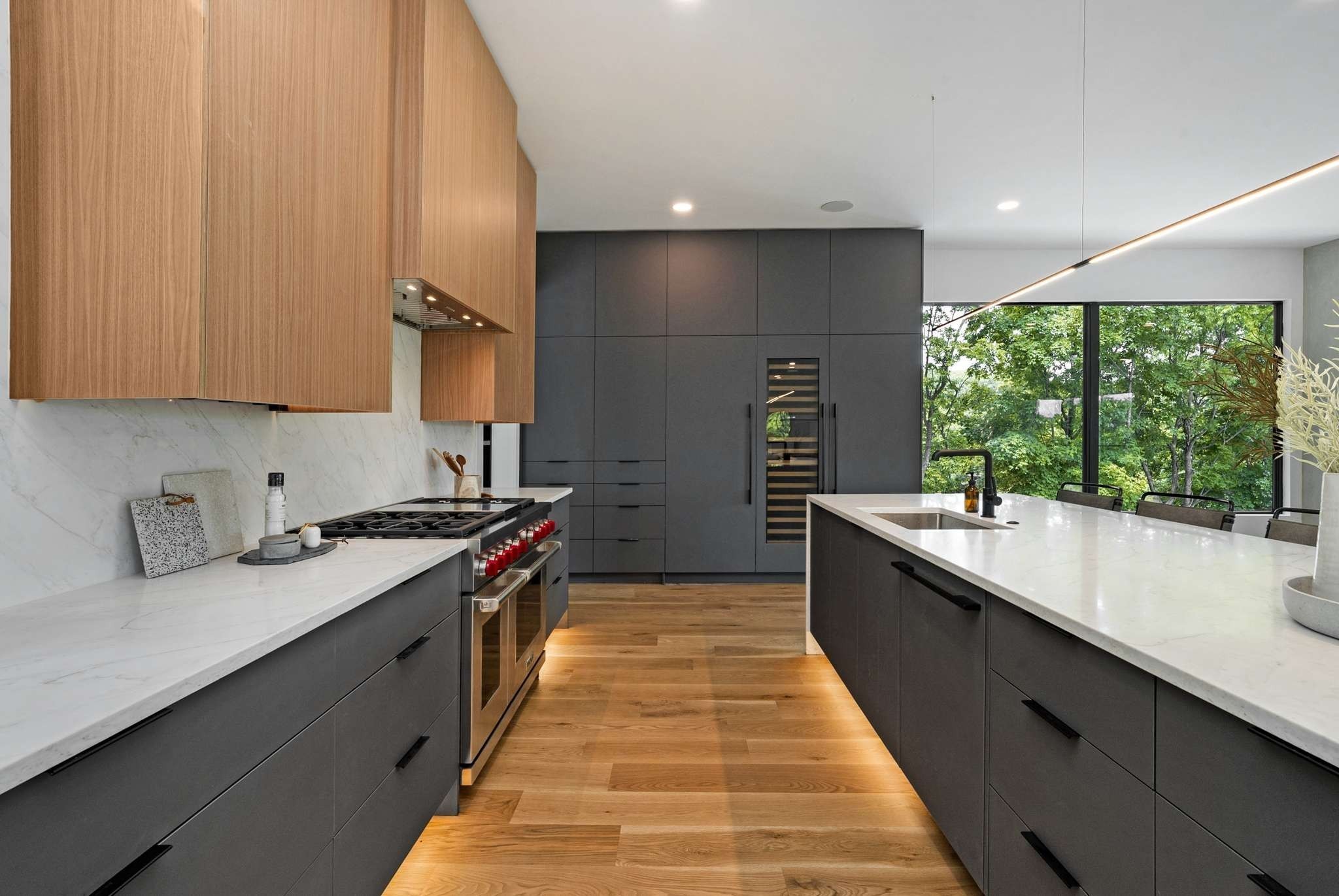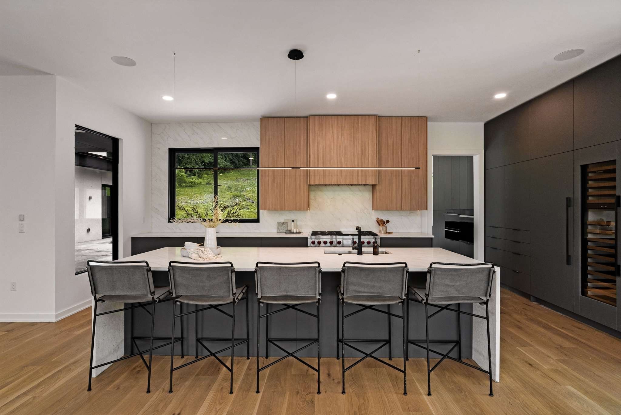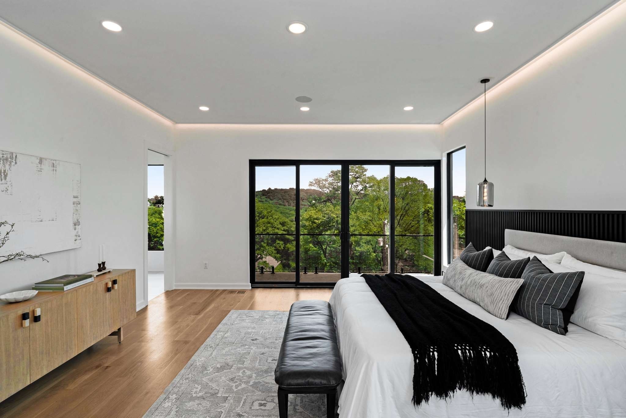 Exquisite MODERN MANSION designed by the award-winning Ryan Thewes, and tucked into the rolling hills of Belle Meade on 1.64 acres. This rare offering is located on one of the largest and most private lots in the area. Expansive living with over 8500 square feet including 5 bedrooms and 9 bathrooms (6 full baths, 3 half baths). Impressive two-story foyer with custom monotube staircase. One of a kind Quartzite entry wall with LED back-lighting feature and entry wall LED lighting. Glass-paneled elevator for with views of the Tennessee hills and the two-story foyer as you ride up that features commercial elevator motorized doors and two sides open to views. Smart control lighting and whole-house audio. Conference-sized office just off the entry. Palatial main floor living drenched in natural light and sweeping hillside views featuring a 72" linear fireplace with modern stucco surround. Primary suite with hillside views from the bedroom and soaking tub. Indoor-outdoor "pool house" wing of the house is a must see with pool bath, storage and pool laundry. Nashville Modern Cabinetry acrylic and custom wood cabinets, WOLF and SUB-ZERO appliances including modern cabinet-front refrigerator, freezer and wine column. Walk-in pantry / skullery with a door out to the patio. Theater room / TV room with wet bar. INCREDIBLE 680 feet square feet of FINISHED FLEX space for a large home gym, full recording studio, golf simulator lounge or wine tasting suite with wine cellar - phenomenal opportunities for customization. Oversized three car garage with three 10' wide doors and additional space for motorcycles, toys and more. Back on the market! Recent appraisal just over $6.4M - MASSIVE price reduction! Buy now with OVER $2M of equity!!!